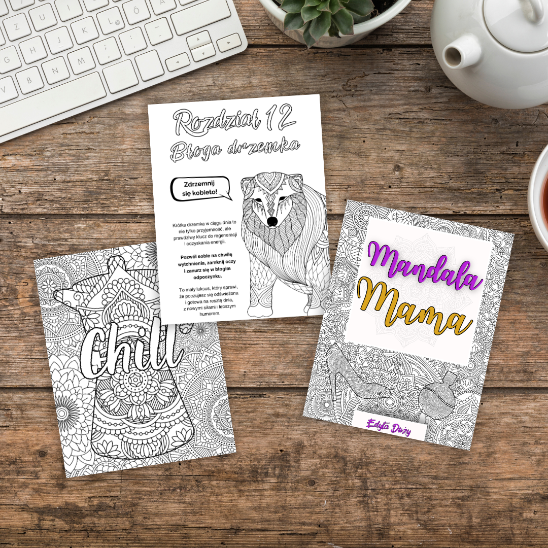 Jestem autorką relaksacyjnych kolorowanek z mandali, takich jak „Mandala Mama” – stworzona z myślą o mamach w każdym wieku, oraz „Wild Animals Mandala”, która przenosi w świat dzikiej przyrody. Moje kolorowanki są dostępne w wersji pdf do samodzielnego druku oraz w wersji papierowej na Amazon KDP, oferując chwilę wytchnienia i twórczej ekspresji.