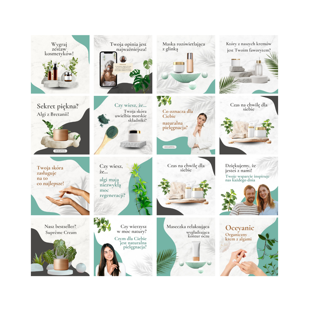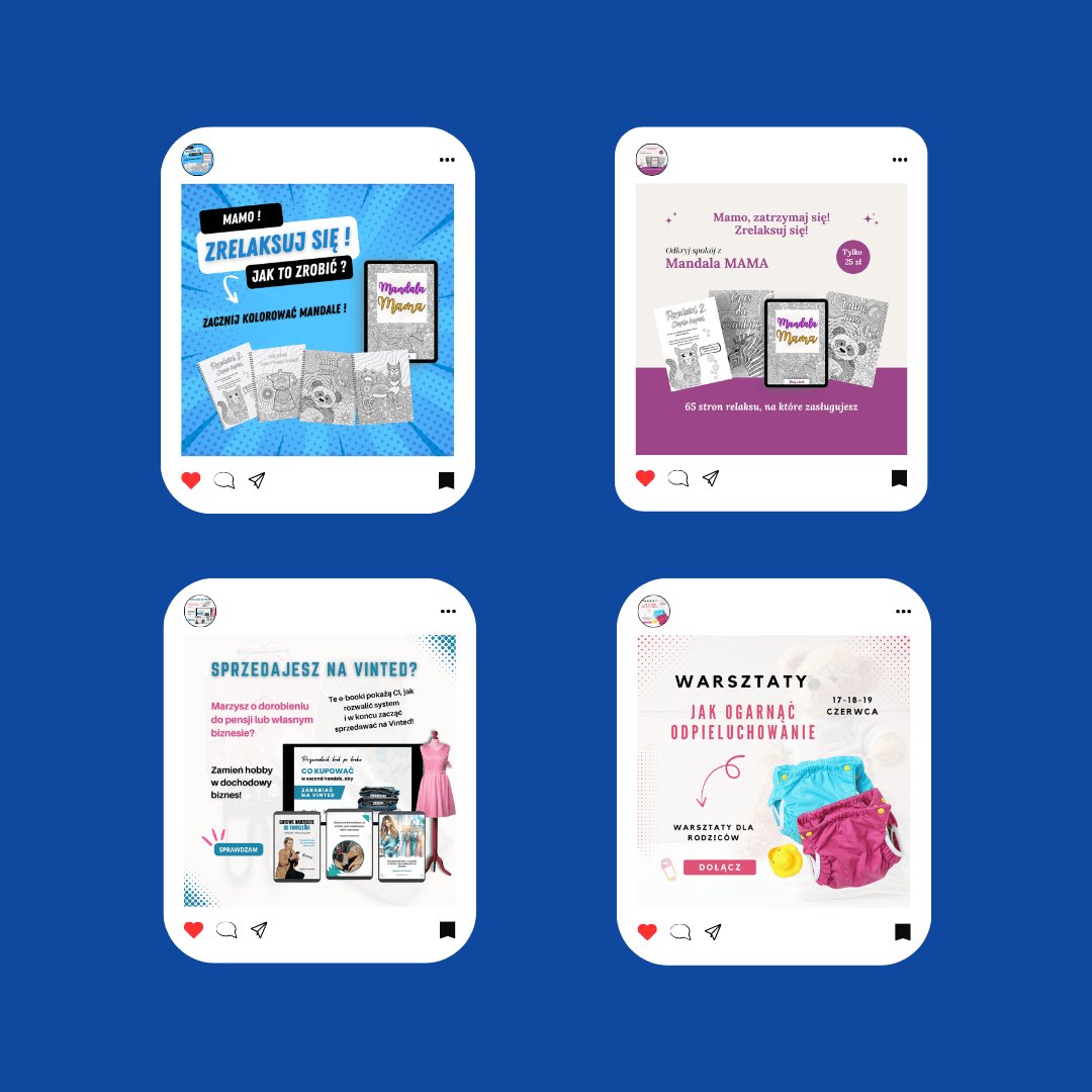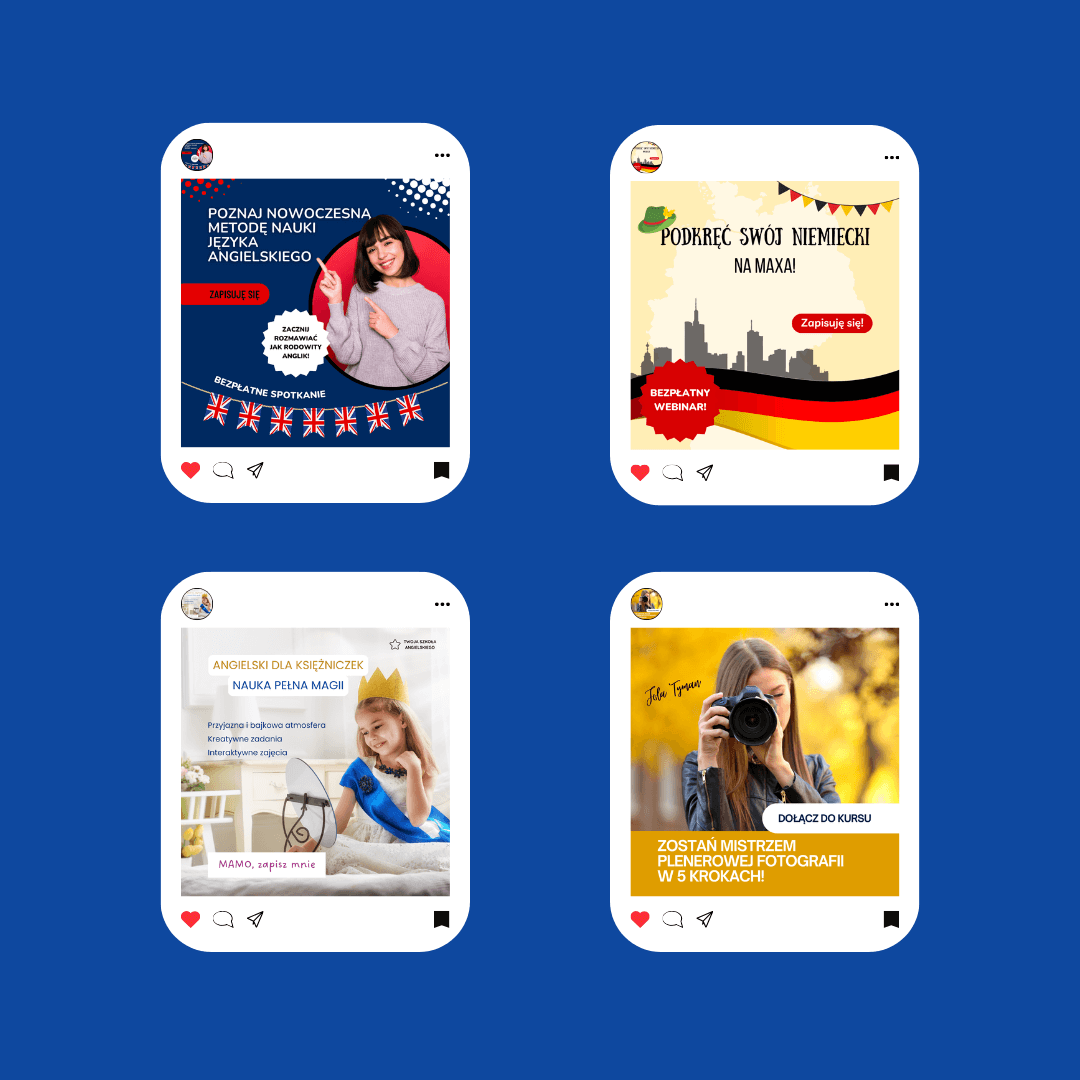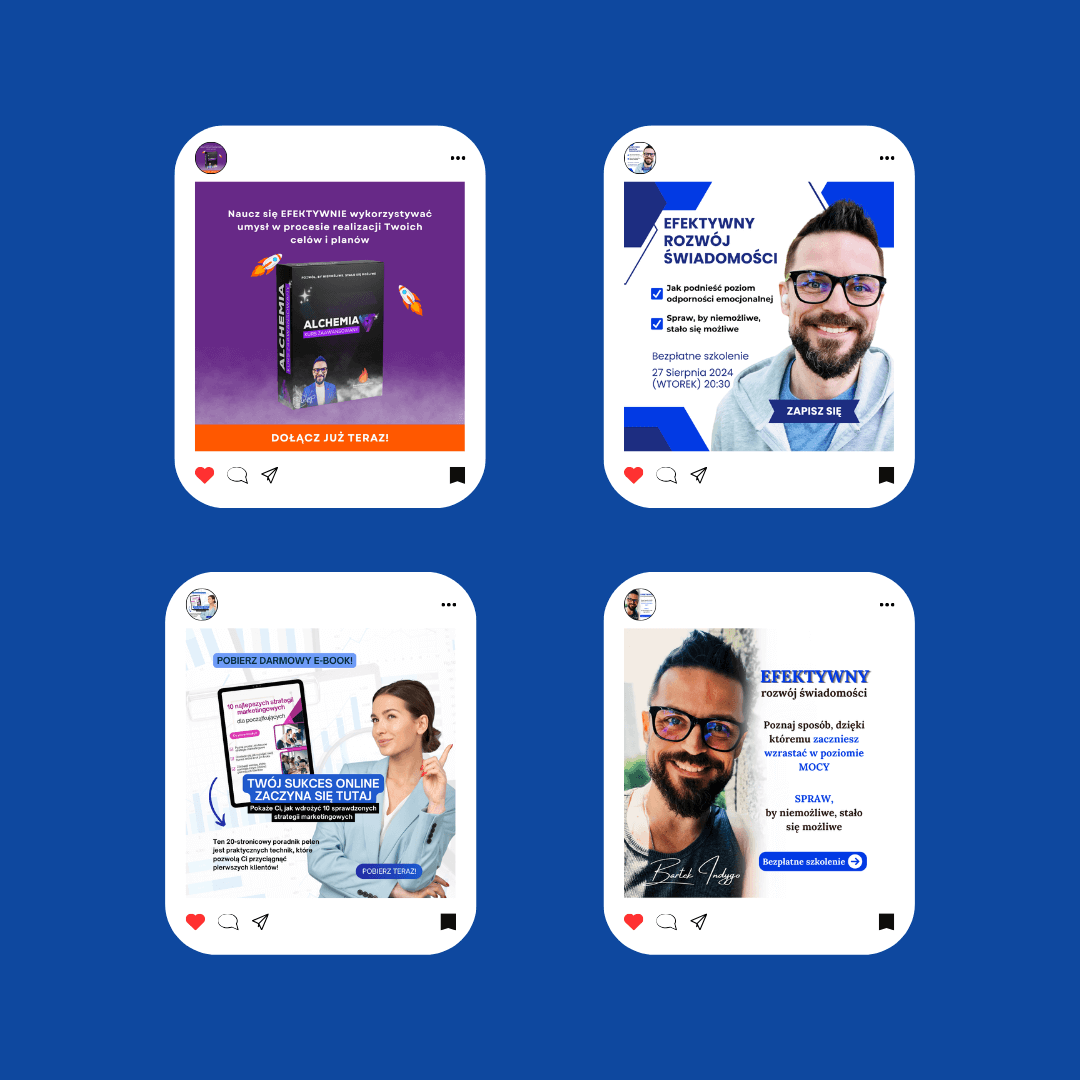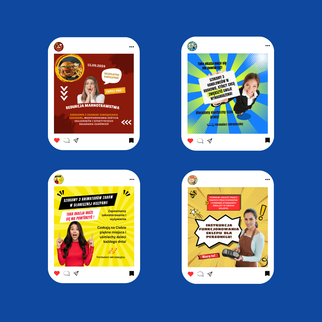Tworzę spójne i przyciągające wzrok grafiki na social media, które odzwierciedlają charakter Twojej marki. Dbam o dopasowanie kolorów, typografii i stylu, aby każda publikacja budowała rozpoznawalność i zaangażowanie Twoich odbiorców.